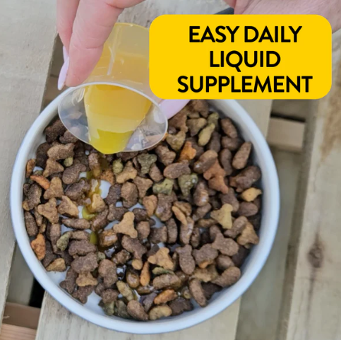 Pour over their food, give it a quick mix, and serve.